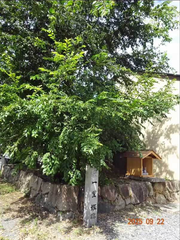 <写真5:大宅一里塚>4km毎の塚は徳川家康が諸街道の修理とともに築造を命じた。今は跡が残る。 |